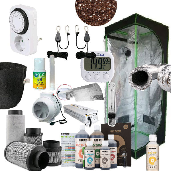 Il kit include anche fertilizzanti organici Biobizz Starter Kit, strumenti per monitorare il clima, gestire il ciclo luce/buio, correggere il pH e tutto il necessario per avviare da subito una coltivazione sana e produttiva.