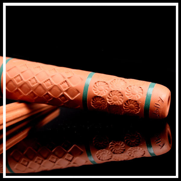🎨 Il Jolly Cyloom Decorato con Fasce Verde 15,5 cm è un cyloom artigianale realizzato in terracotta, caratterizzato da eleganti decorazioni incise e raffinate fasce verdi che ne esaltano lo stile unico.