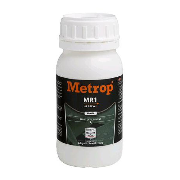Metrop MR1 è un fertilizzante liquido altamente concentrato studiato specificamente per la fase di crescita delle piante. Questo prodotto è formulato per garantire una nutrizione ottimale durante la fase vegetativa, favorendo lo sviluppo robusto delle radici e un'accelerata crescita delle piante. Metrop MR1 contiene un perfetto equilibrio di nutrienti essenziali, tra cui azoto, fosforo e potassio, oltre a microelementi di alta qualità, garantendo che le piante ricevano tutti i nutrienti necessari per una crescita vigorosa.